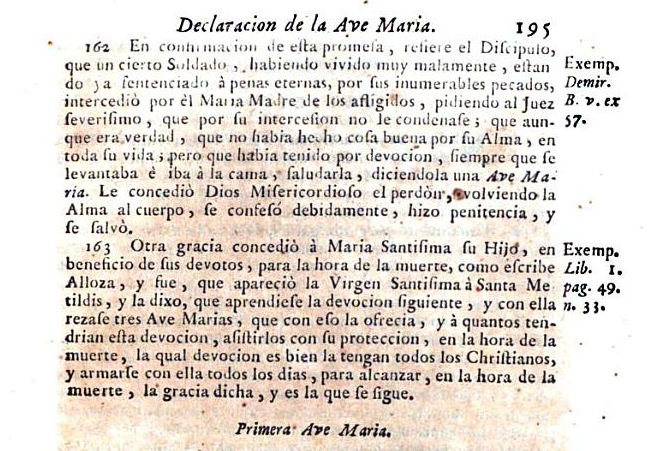 IL PARADISO ASSICURATO AI DEVOTI DELLA MADONNA PER LA RECITA QUOTIDIANA DI “TRE AVE MARIA”