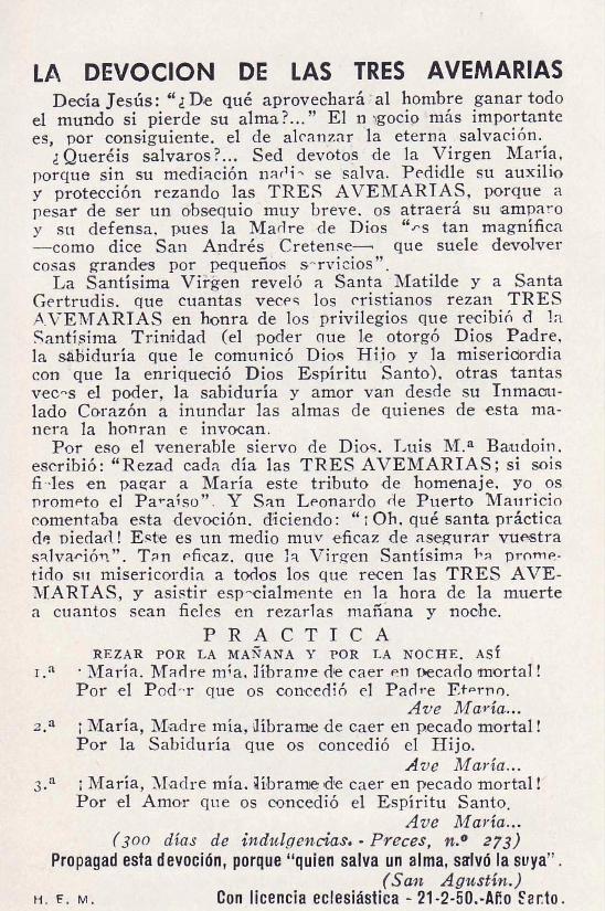 Una galería de imágenes que muestran la aprobación eclesiástica de la devoción de los Tres Ave María [ o Tres Avemaría o Tres Ave ]: