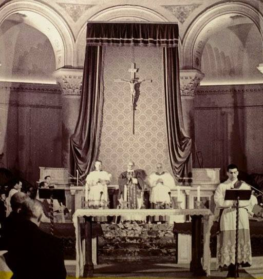 Prima messa in italiano, 7 marzo 1965. Il Concilio era ancora aperto, il Novus Ordo non l’avevano ancora inventato, ma il tavolino per la cena già aveva sostituito l’altare della Messa.