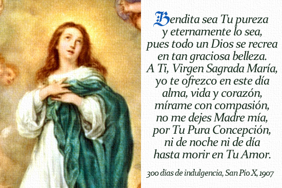 Puestos de rodillas, delante de una imagen de la Inmaculada Concepción, se santiguará y luego dirá todos los días el siguiente