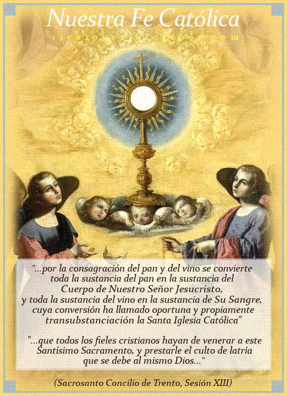 “…que todos los fieles cristianos hayan de venerar a este Santísimo Sacramento, y prestarle el culto de latría que se debe al mismo Dios” (Sacrosanto Concilio de Trento, Sesión XIII)