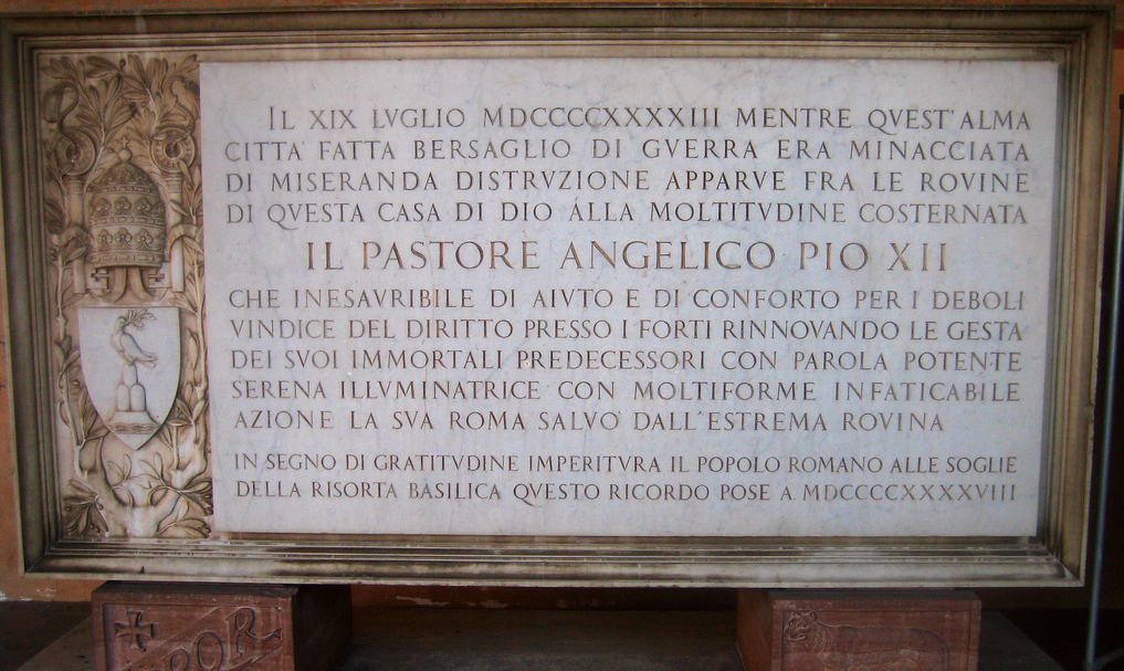 In piccolo Pio XII a San Lorenzo il 19 luglio 1943. In grande Pio XII al Laterano il 13 agosto 1943.
