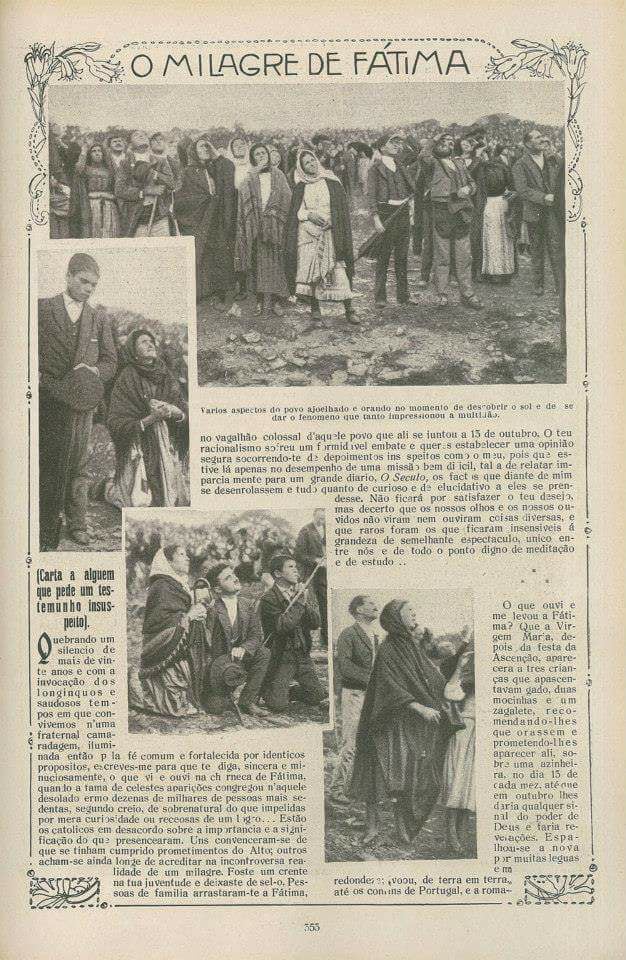 (Avelino de Almeida, COISAS ESPANTOSAS! COMO O SOL BAILOU AO MEIO DIA EM FÁTIMA, “O Século”, Lisboa (edição da manhã) 37 (l2.876) 15 Out. 1917, p.1 colonne 6-7; p.2 col.1)