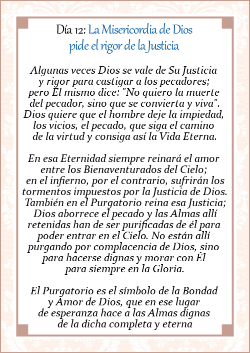 Ejercicio Piadoso de Noviembre en favor de las Benditas Ánimas del Purgatorio. Día 12: LA MISERICORDIA DE DIOS PIDE EL RIGOR DE LA JUSTICIA