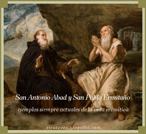 Después de pasar allí en el desierto orando, ayunando, meditando, por más de setenta años seguidos, ya creía que moriría sin volver a ver rostro humano alguno, y sin ser conocido por nadie, cuando Dios dispuso cumplir aquella palabra que dijo Cristo: “Todo el que se humilla será engrandecido” y sucedió que en aquel desierto había otro ermitaño haciendo penitencia. Era San Antonio Abad. Y una vez a este Santo le vino la tentación de creer que él era el ermitaño más antiguo que había en el mundo, y una noche oyó en sueños que le decían: “Hay otro penitente más antiguo que tú. Emprende el viaje y lo lograrás encontrar“. Antonio madrugó a partir de viaje y después de caminar horas y horas llegó a la puerta de la cueva donde vivía Pablo. Este al oír ruido afuera creyó que era una fiera que se acercaba, y tapó la entrada con una piedra. Antonio llamó por muy largo rato suplicándole que moviera la piedra para poder saludarlo.