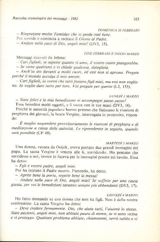 [René Laurentin, Messaggio e pedagogia di Maria a Medjugorje. Raccolta cronologica dei messaggi. Urgenza del ritorno a Dio, Queriniana, 1988, p. 165, messaggio tratto dal Diario di Vicka (terzo quaderno)]