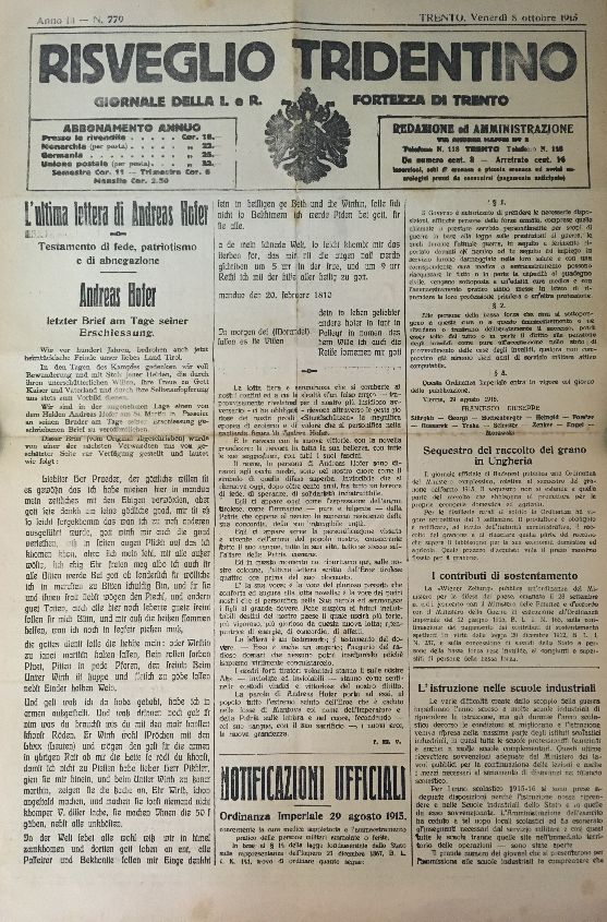 Peraltro, “quando il sistema metternichiano era verso la fine, si cercò di rafforzare il sentimento austriaco presso la popolazione tirolese per prevenire possibili moti o pensieri rivoluzionari”(von Hartungen).